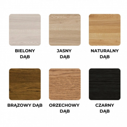 Dostępne warianty wybarwienia blatu: bielony, brązowy, naturalny, czarny, orzechowy oraz jasny