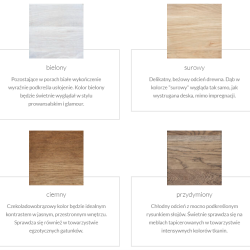 Naturalne oleje i olejowoski bezpieczne w kontakcie z żywnością i dziećmi, odporne na plamy i wilgoć dzięki powłoce hydrofobowej (wymaga okresowej impregnacji).