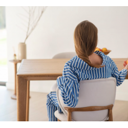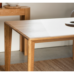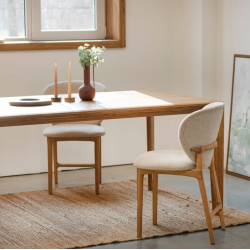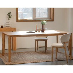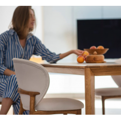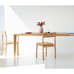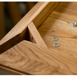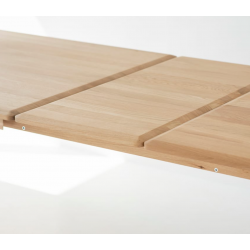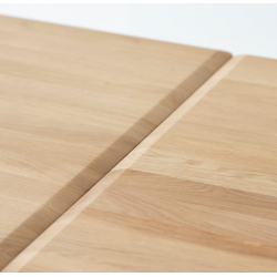 Dzięki możliwości powiększenia powierzchni o jedną lub dwie wkładki po 50 cm, Bocca sprawdzi się zarówno w codziennym użytkowaniu, jak i podczas większych spotkań. Wkładki przechowywane są wewnątrz stołu, a mechanizm działa płynnie i dyskretnie, zachowując czystość formy. Stabilna konstrukcja gwarantuje trwałość na lata, a naturalne wykończenie podkreśla unikalny rysunek dębowego drewna.