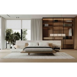 Łóżko Lebron to połączenie naturalnego drewna z dwoma profilowanymi miękkimi zagłówkami. Taki zabieg tworzy piękny i funkcjonalny mebel. Krawędzie łóżka posiadają frezowaną krawędź przez co całość wygląda niezwykle lekko. Naturalne drewno z widocznymi słojami jest odpowiednio zaimpregnowane bezpiecznym środkiem przez co jest gładkie i przyjemne w dotyku. Tapicerowane zagłówki z wysokiej jakości materiału idealnie sprawdzają się podczas wieczornych lektur w łóżku. Możliwość dobrania odpowiedniego materaca pozwala Klientowi stworzyć idealne miejsce do spania, dopasowane do jego potrzeb i preferencji.