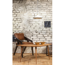 Klosz lampy wykonany jest ze stali, metodą ręcznego wyoblania, w polskim zakładzie rzemieślniczym – stąd pewne niedoskonałości i nierówności, które są cechą charakterystyczną dla tej metody produkcji.